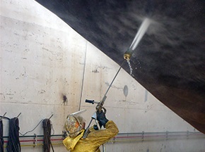 看如何用高壓清洗機(jī)清洗萬(wàn)噸巨輪